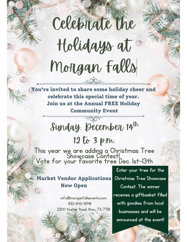 Morgan Falls Event Center is adding a Tree Showcase & Decorating Contest this December to our FREE Community Holiday event, and we would love for you to be part of it.